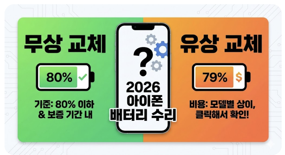 아이폰 사용자들이 가장 민감하게 확인하는 숫자, 바로 '배터리 성능 상태'입니다. 특히 80%라는 수치는 단순한 숫자가 아니라 수리비 0원과 10만 원 이상을 가르는 결정적인 기준이 됩니다. 애플케어플러스 가입 여부에 따른 비용 차이와 정확한 교체 타이밍을 정리했습니다.