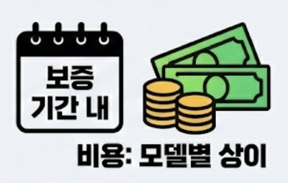 보증 기간이 지났거나 애케플이 없는 경우, 전액 본인 부담입니다. 최근 환율과 인건비 상승으로 인해 비용이 계속 오르고 있습니다.