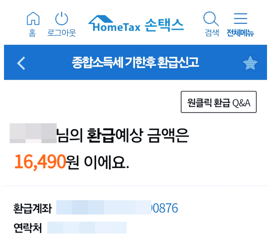 이번 원클릭 서비스를 통해 약 13만 원을 돌려받았고, 절차는 단 5분이면 끝났습니다.