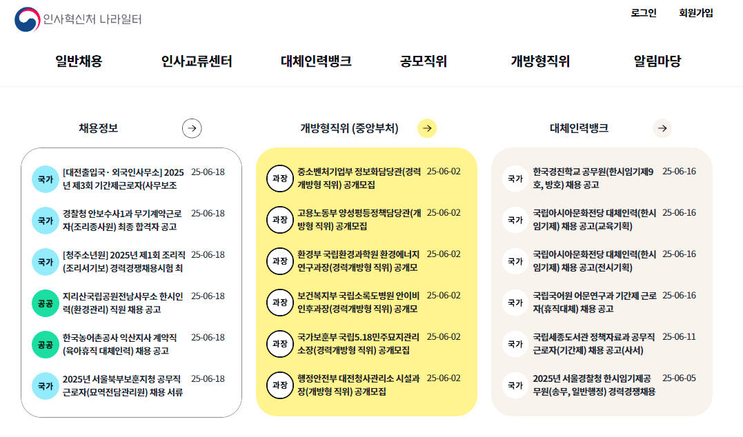 대통령실 채용은 인사혁신처의 나라일터를 통해 모집공고를 확인 하고 지원 할 수 있습니다. 나라일터를 통해 합격자 발표도 확인 할 수 있습니다.
